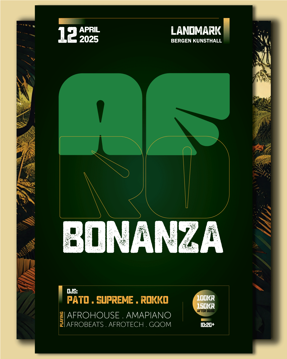 Visual Identity and poster designs for advertisement of the first Afro Bonanza event in Bergen, Norway
