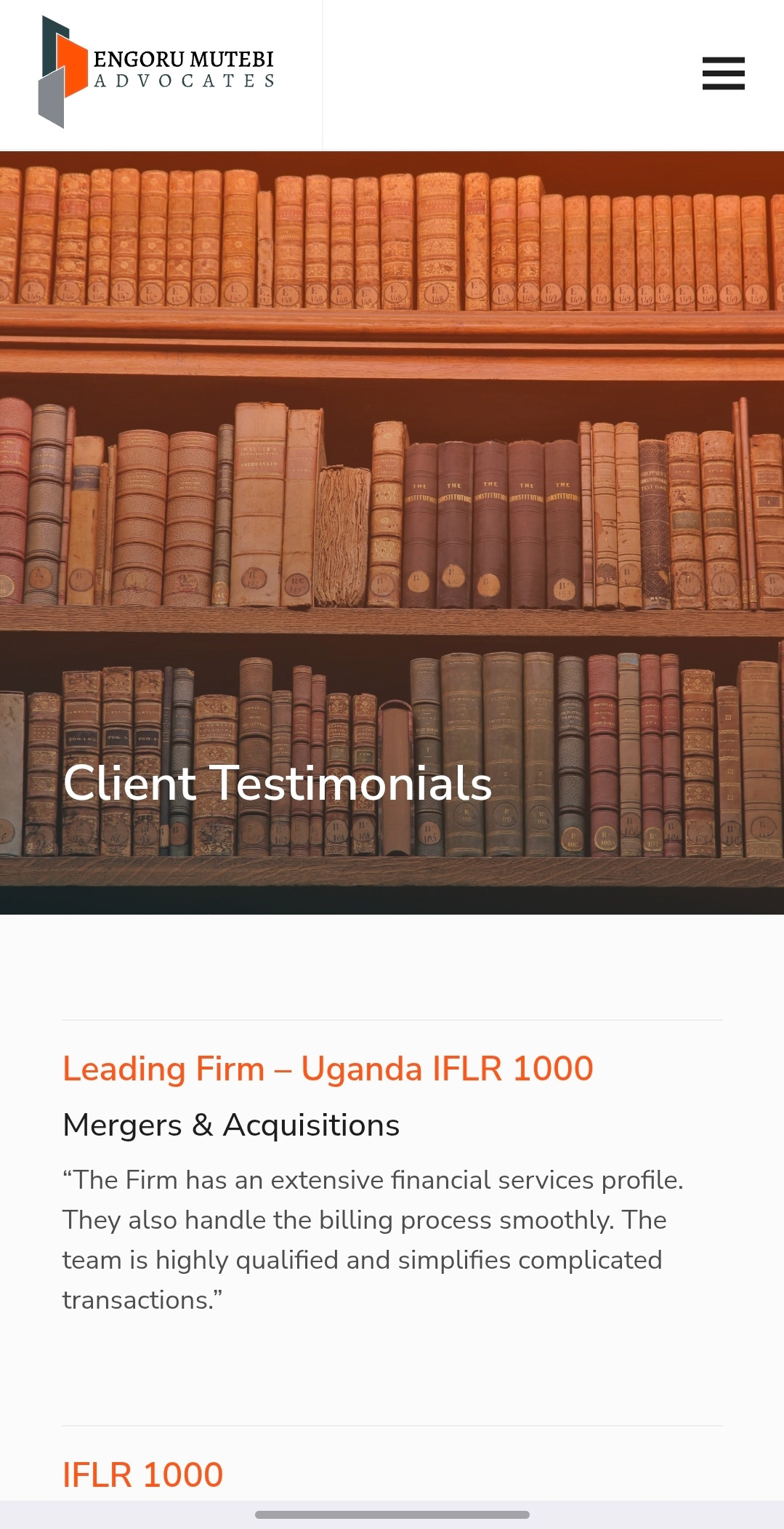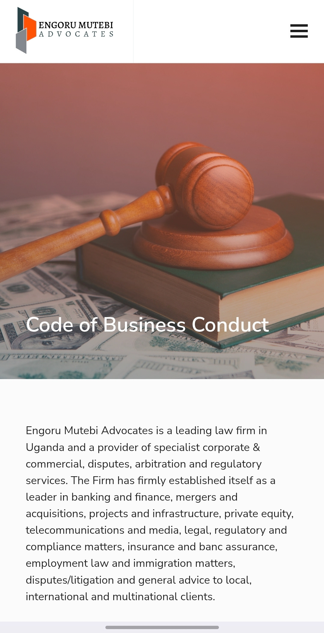Engoru Mutebi Advocates is a full-service Uganda law firm with established expertise across corporate law, projects and infrastructure, M&A, project finance, capital markets, competition law, and commercial disputes. The firm’s strength in handling complex financial transactions informed the approach to the website design, with a focus on clarity, structure, and ease of navigation.